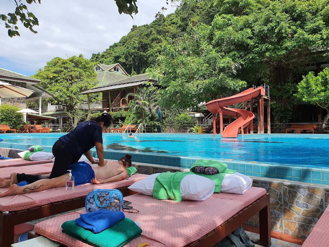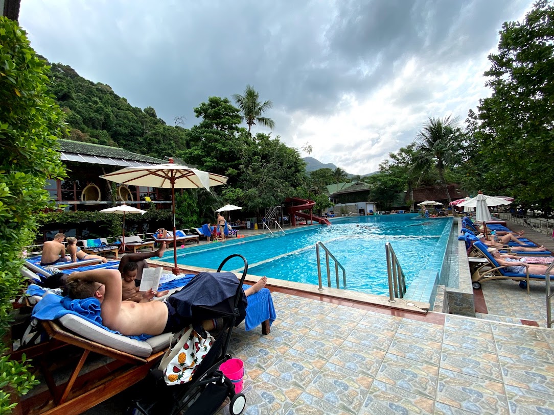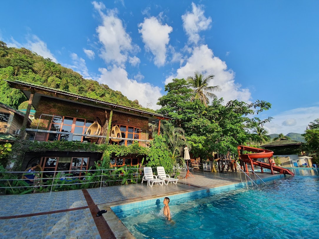 חדרי אירוח רגועים הכוללים מגורים חמים וסעודות על חוף הים, בתוספת בריכה חיצונית עם מגלשת מים.