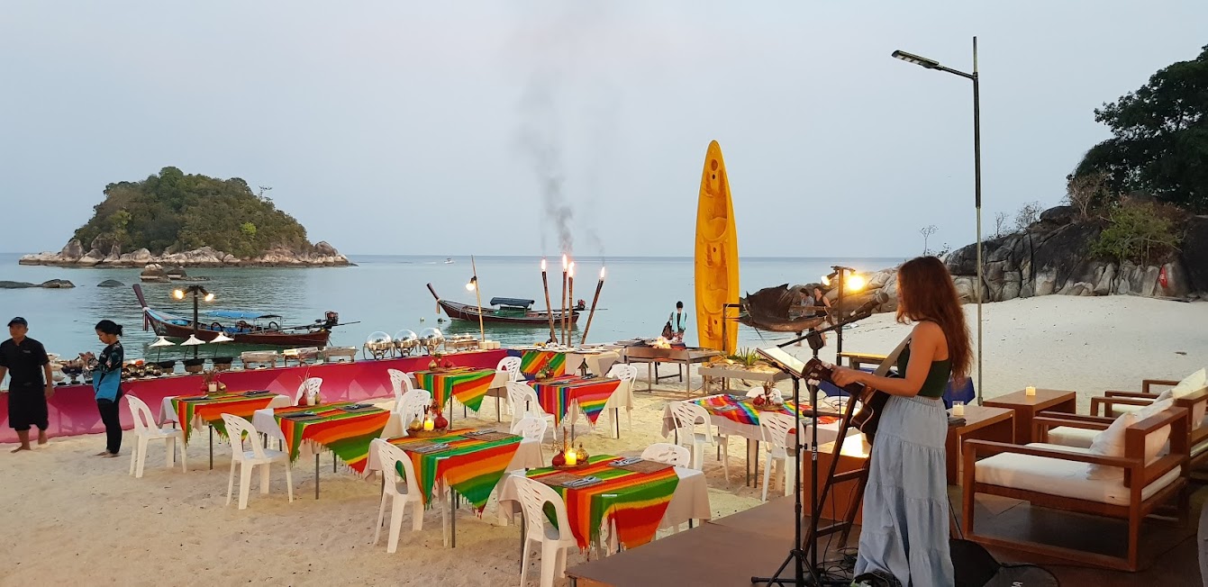 חדרים מאווררים במלון לא פורמלי המציע מסעדה, גישה ישירה לחוף ובריכה עם שפת אינסוף.