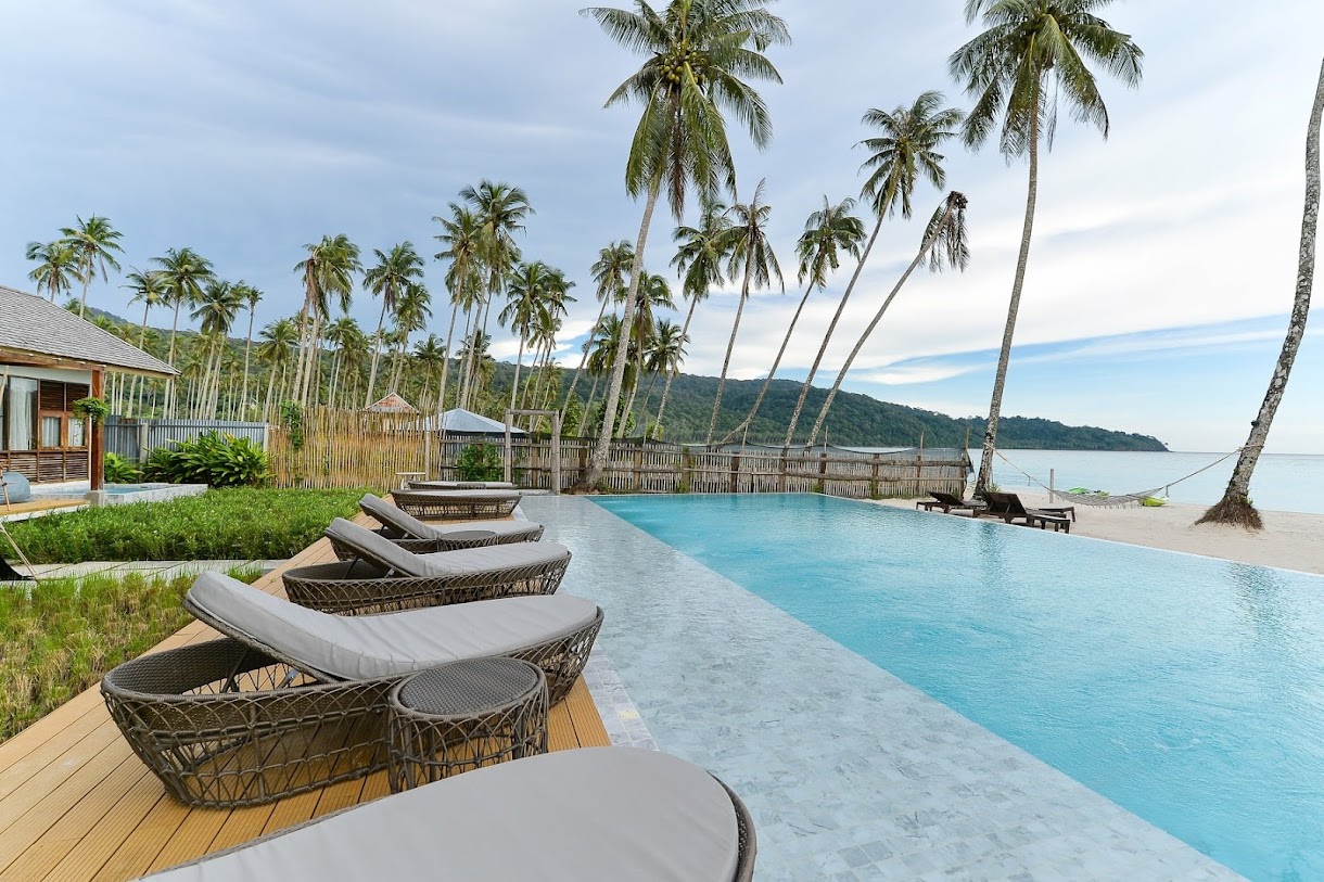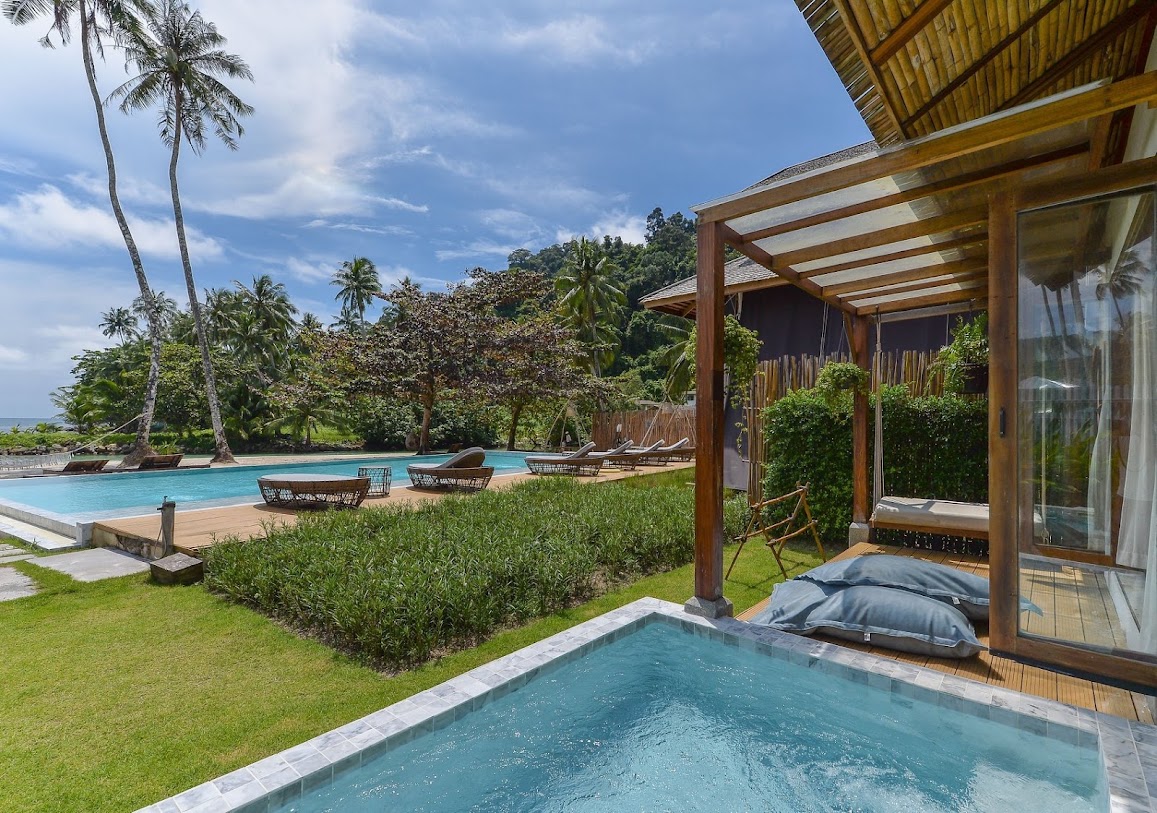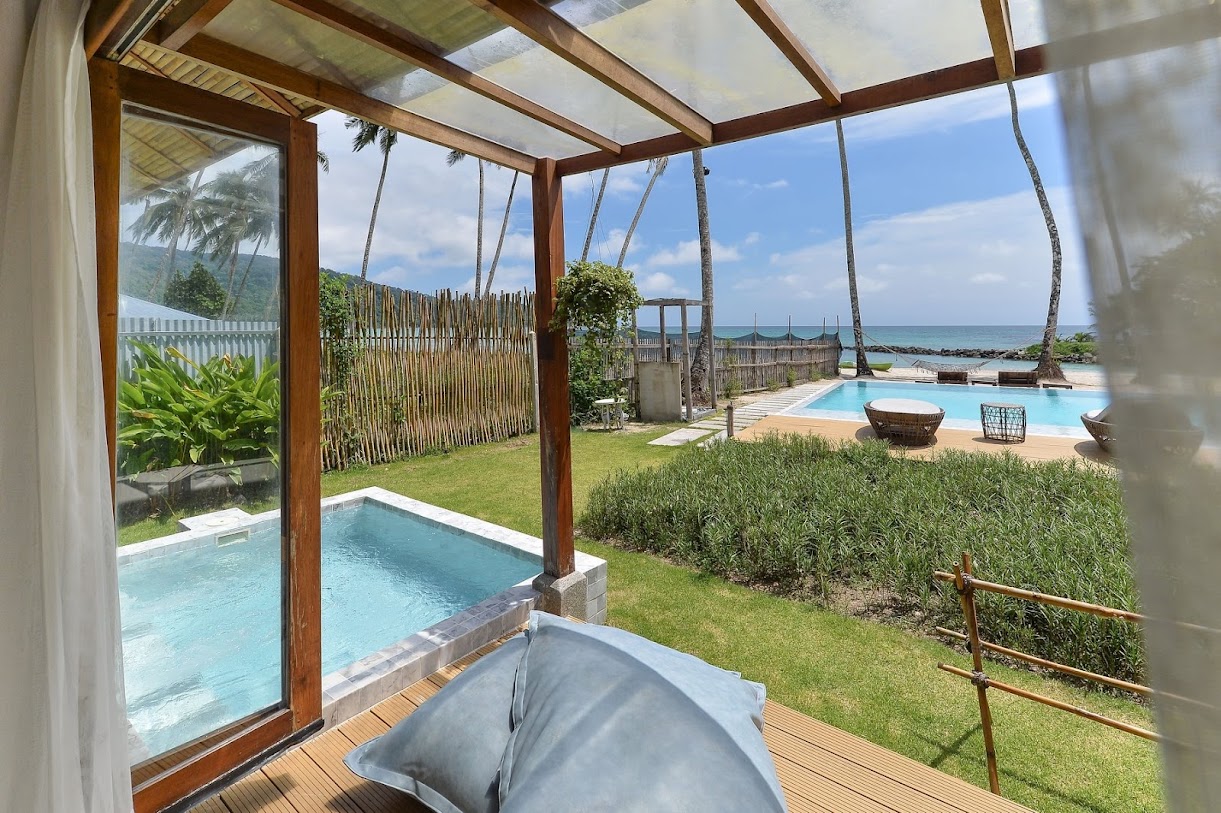 בונגלוס שקטים ומאווררים המציעים גישה ישירה לחוף, כמו גם מסעדה ובריכה חיצונית.