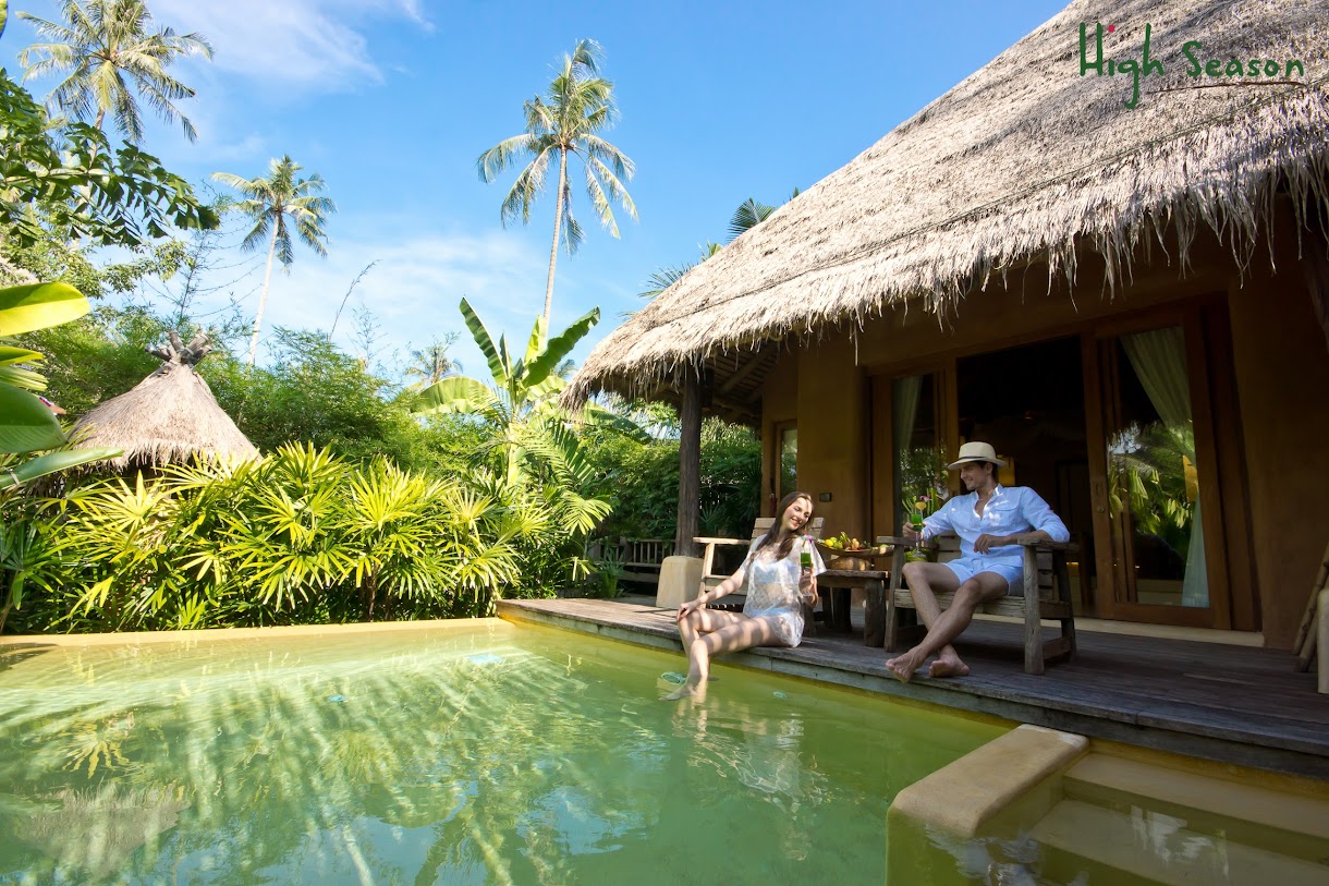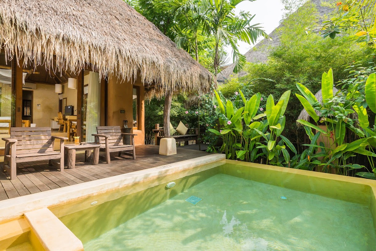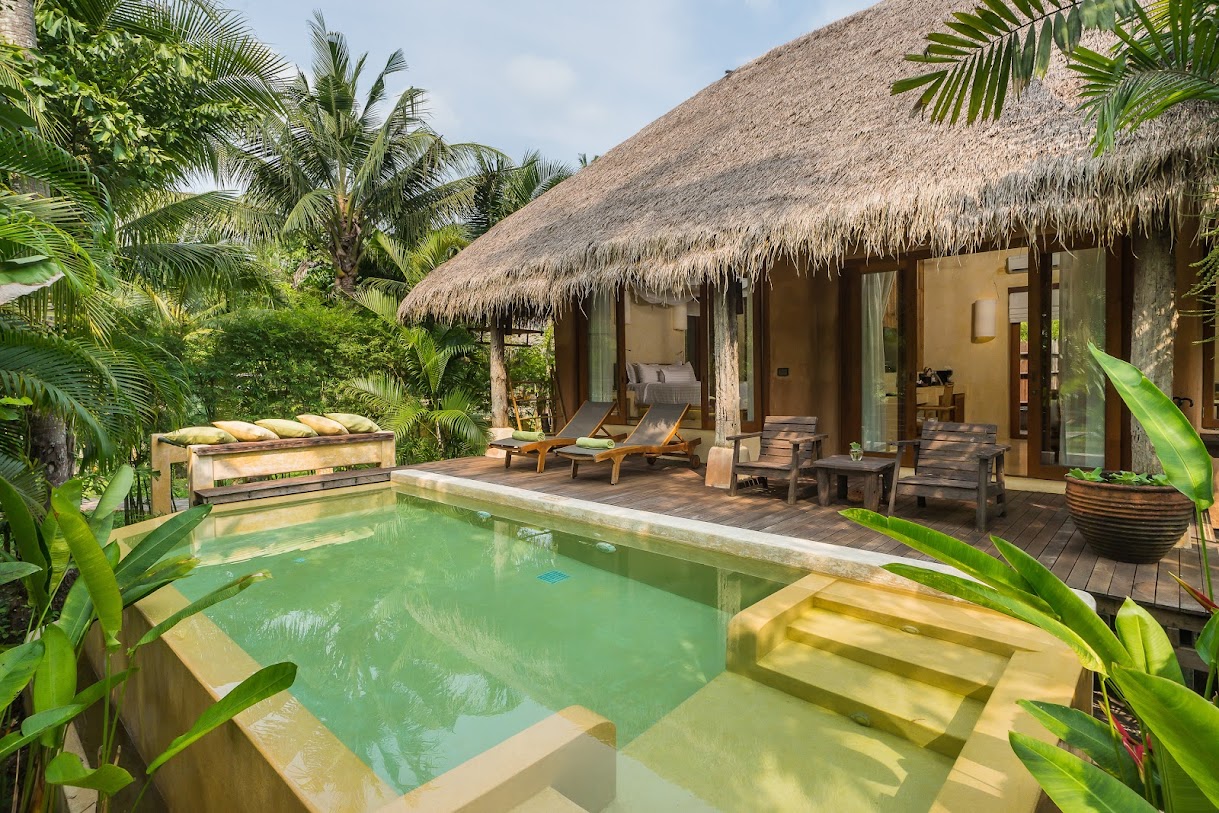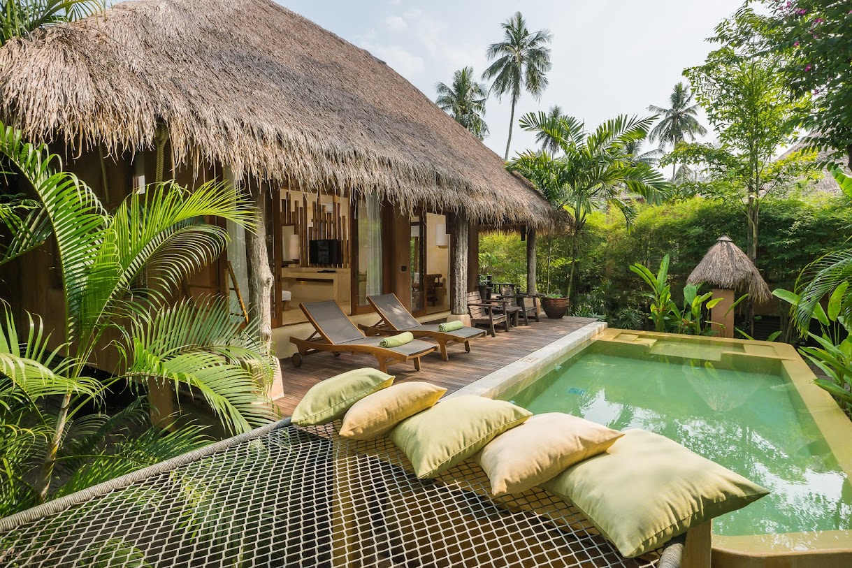 וילות יוקרתיות עם בריכות פרטיות באתר נופש שליו על חוף הים עם 3 מסעדות, בר וספא.