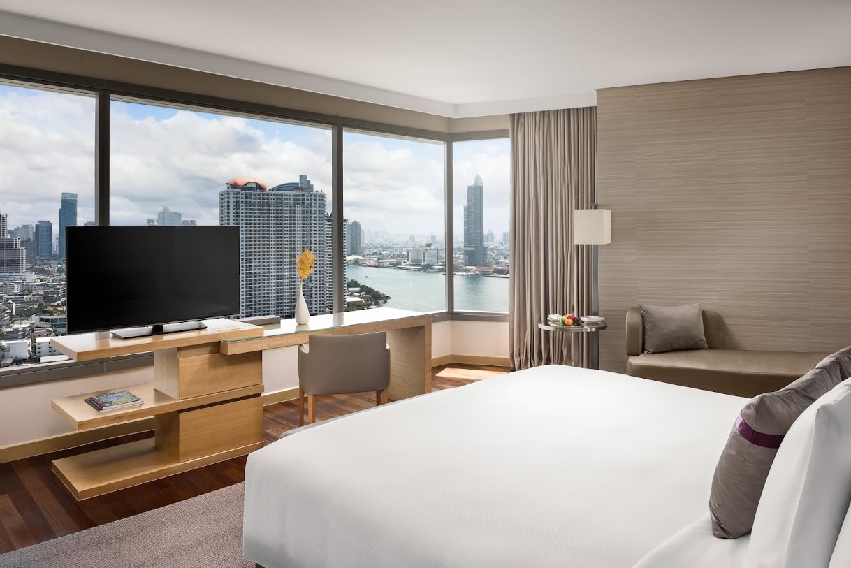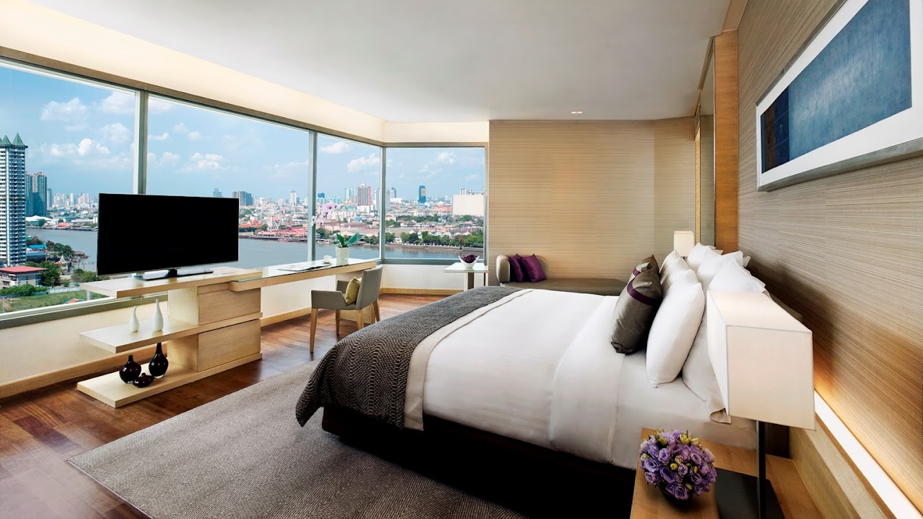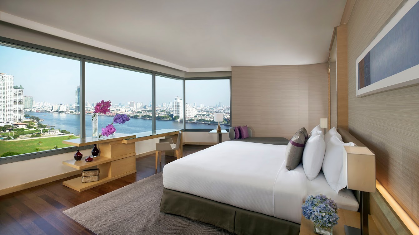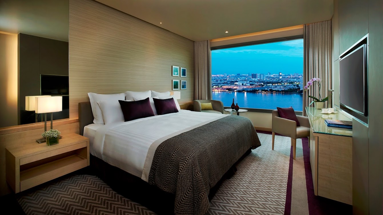 מלון אלגנטי עם נוף לנהר, המציע ברים ובריכת גג, ספא ואוכל אלגנטי.