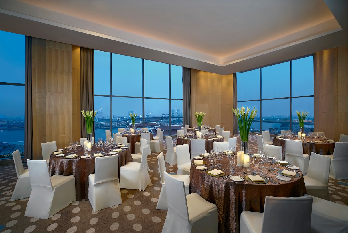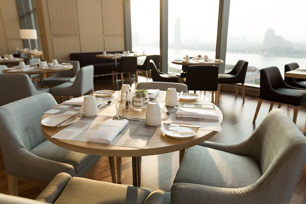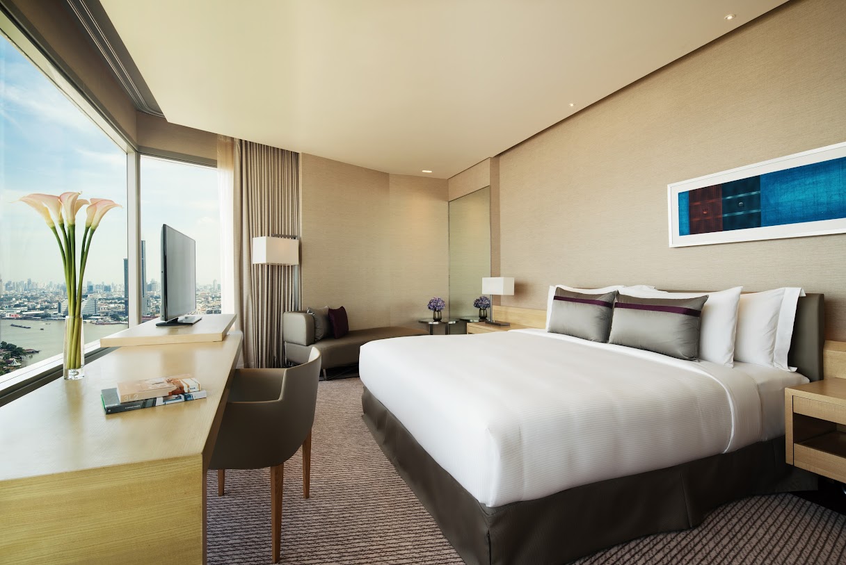 מלון אלגנטי עם נוף לנהר, המציע ברים ובריכת גג, ספא ואוכל אלגנטי.