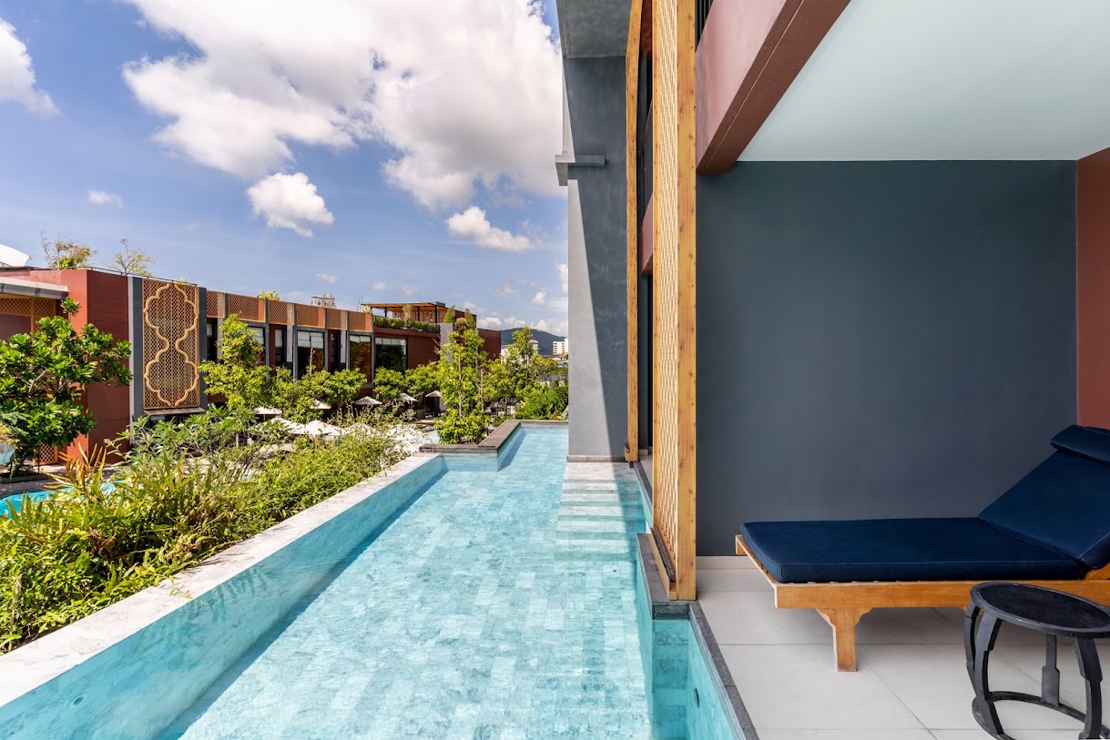 חדרים אופנתיים במלון מלוטש הכולל בריכה עם בר שניתן לשחות אליו, ספא ומסעדה.