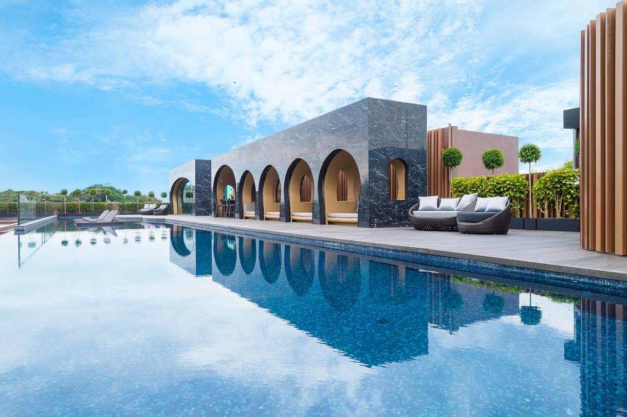 אתר נופש מסוגנן המציע ספא, בריכה ואוכל צרפתי יוקרתי, בתוספת בר תה וטרקלין על הגג.