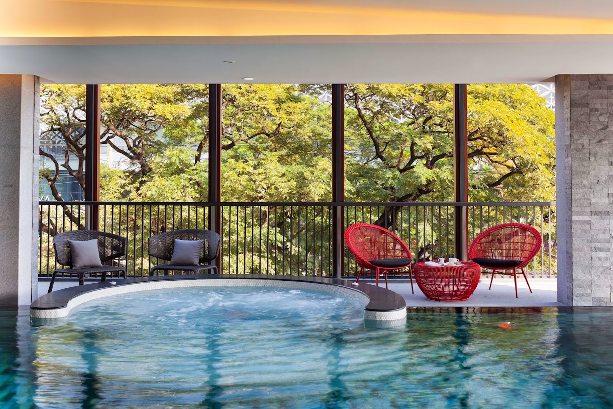 מלון מעודן לשהייה ממושכת הכולל חדרים וסוויטות מאווררים, בתוספת אוכל, בריכה חיצונית וחדר כושר.