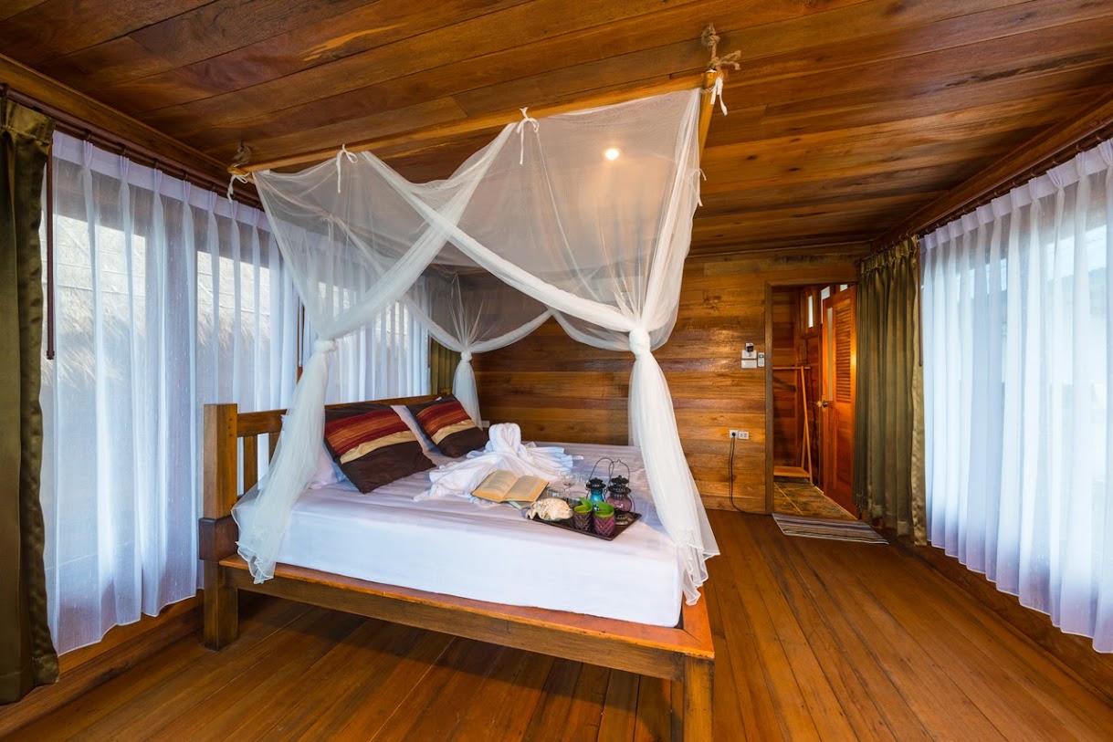 אתר נופש לא פורמלי על החוף המציע בונגלוס מבמבוק עם כילות נגד יתושים, וכן מסעדה/בר ועיסויים.
