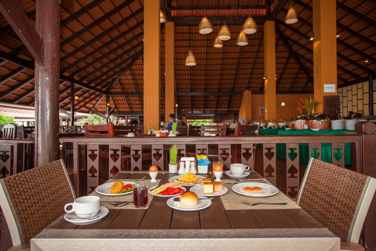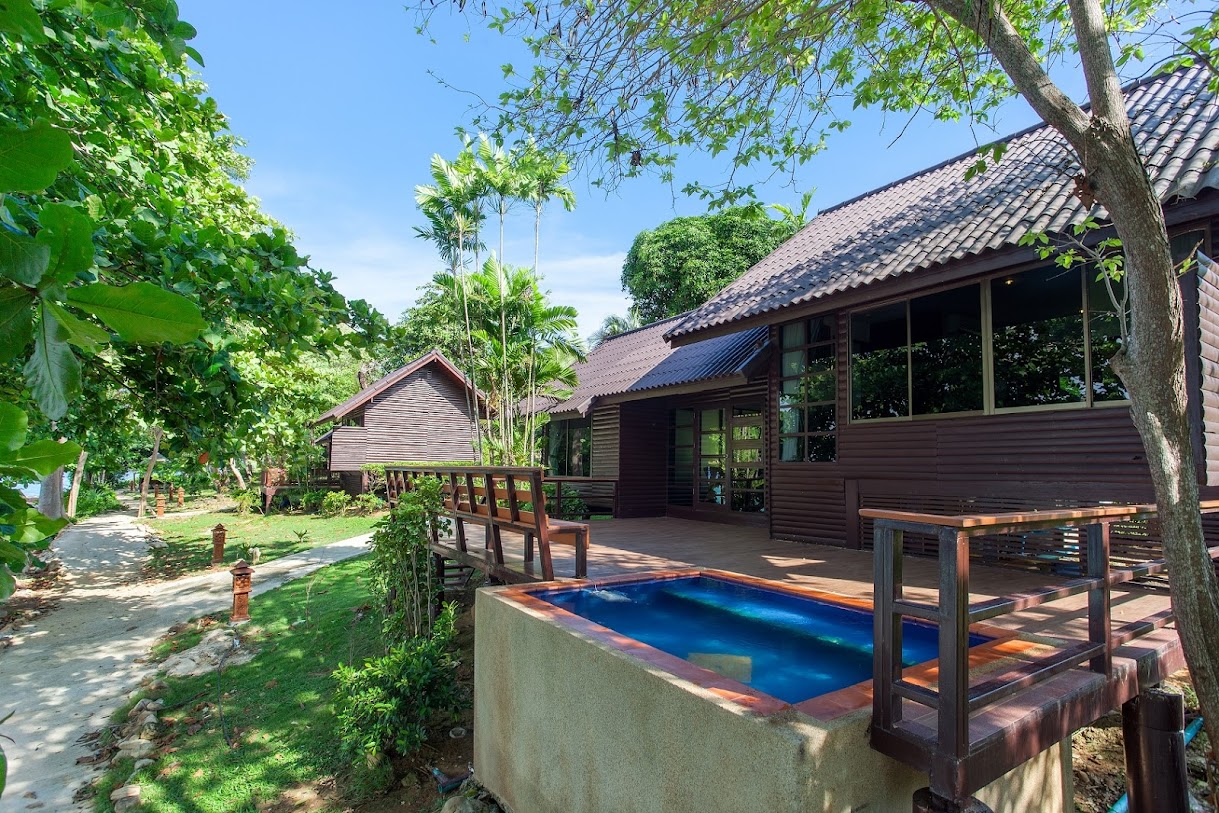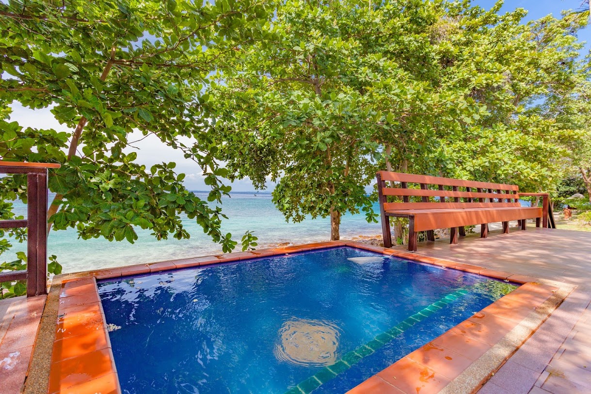 אתר נופש רגוע עם חדרים צנועים, קוטג'ים ווילות על חוף הים, בתוספת מסעדה חיצונית ובריכה.