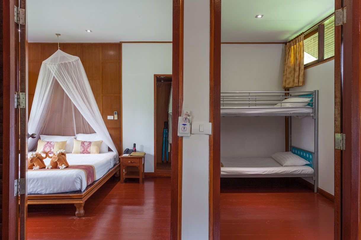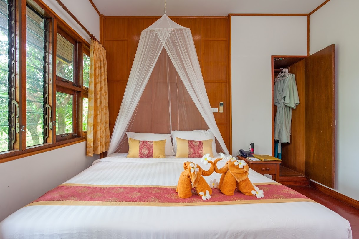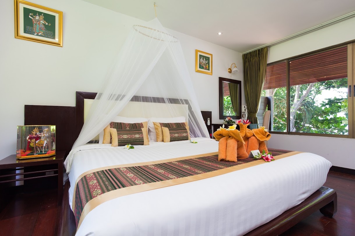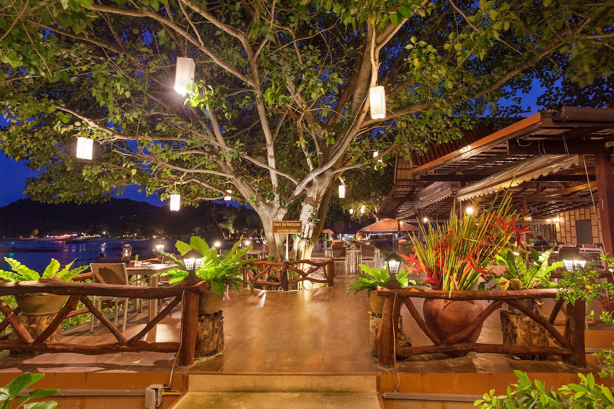 אתר נופש רגוע עם חדרים צנועים, קוטג'ים ווילות על חוף הים, בתוספת מסעדה חיצונית ובריכה.