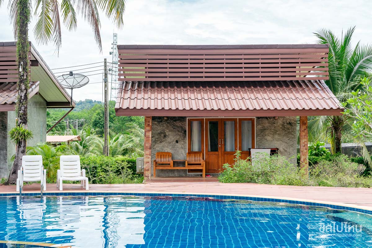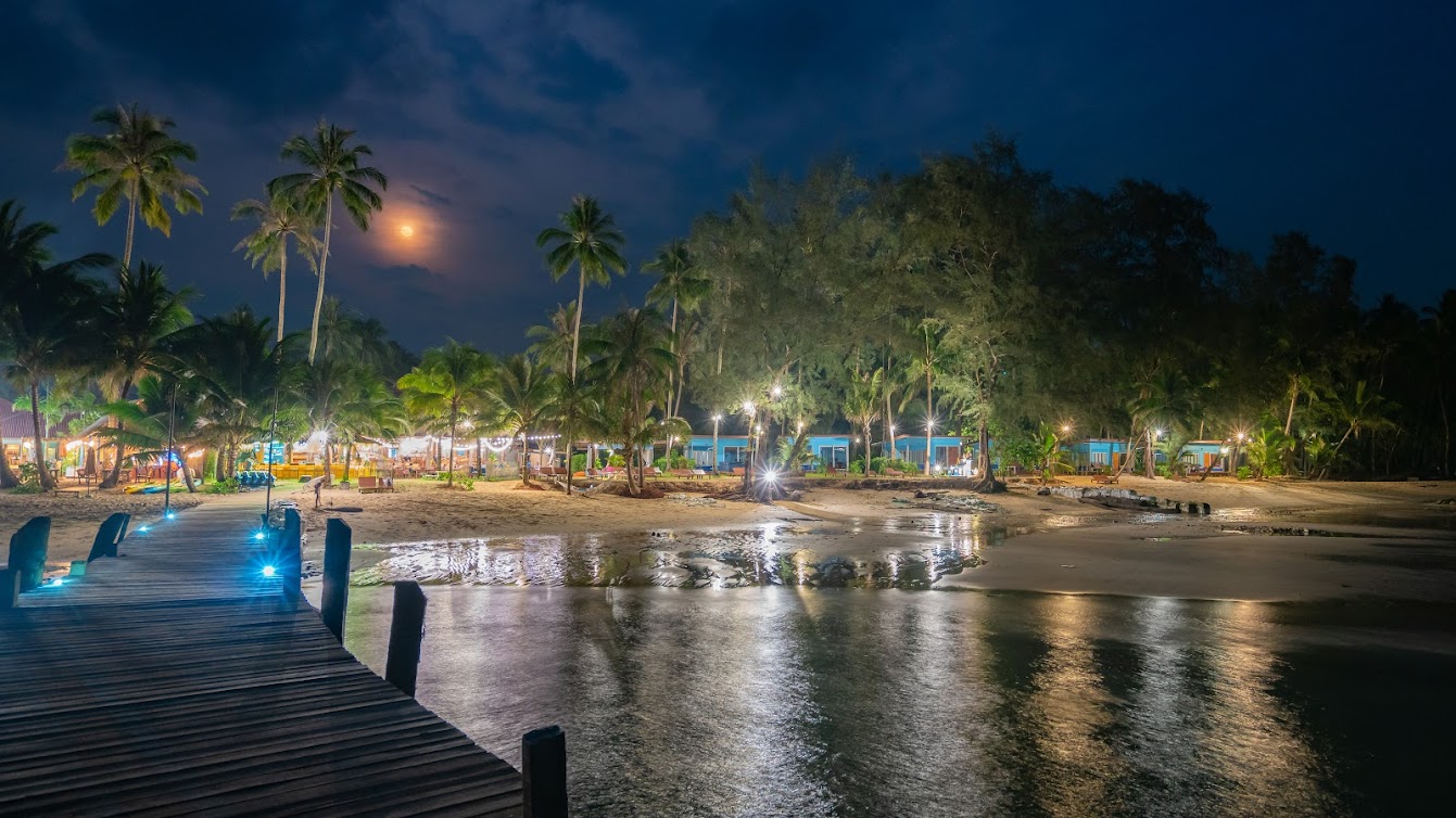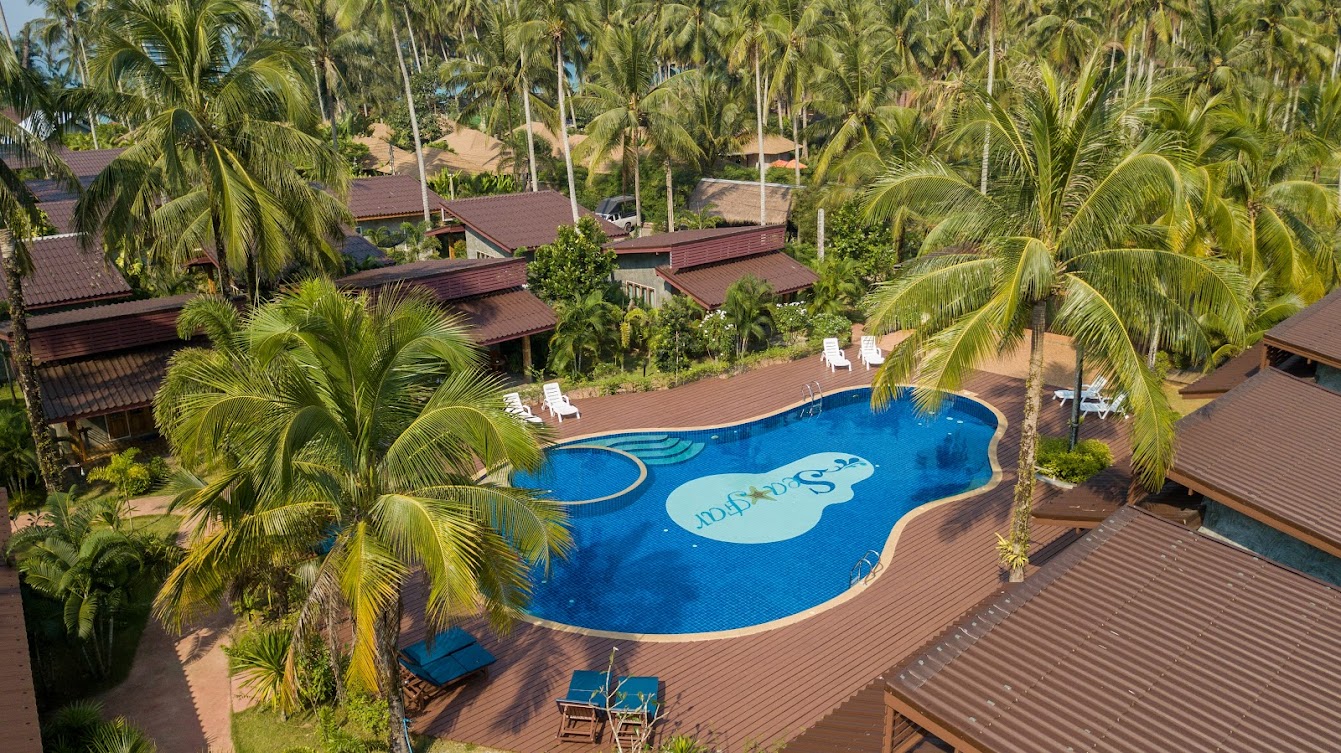 בונגלוס לא פורמליים באתר נופש נינוח על חוף הים עם אוכל ובר, כמו גם בריכה חיצונית וספא.