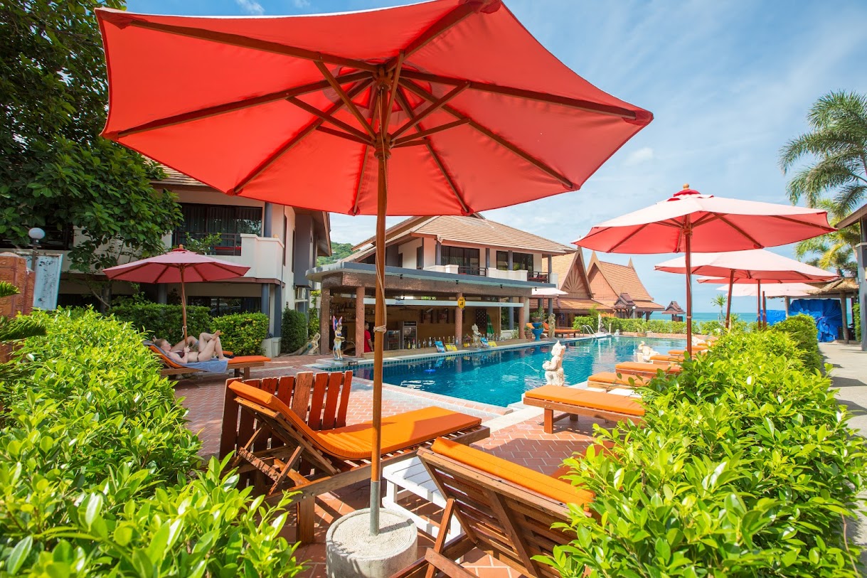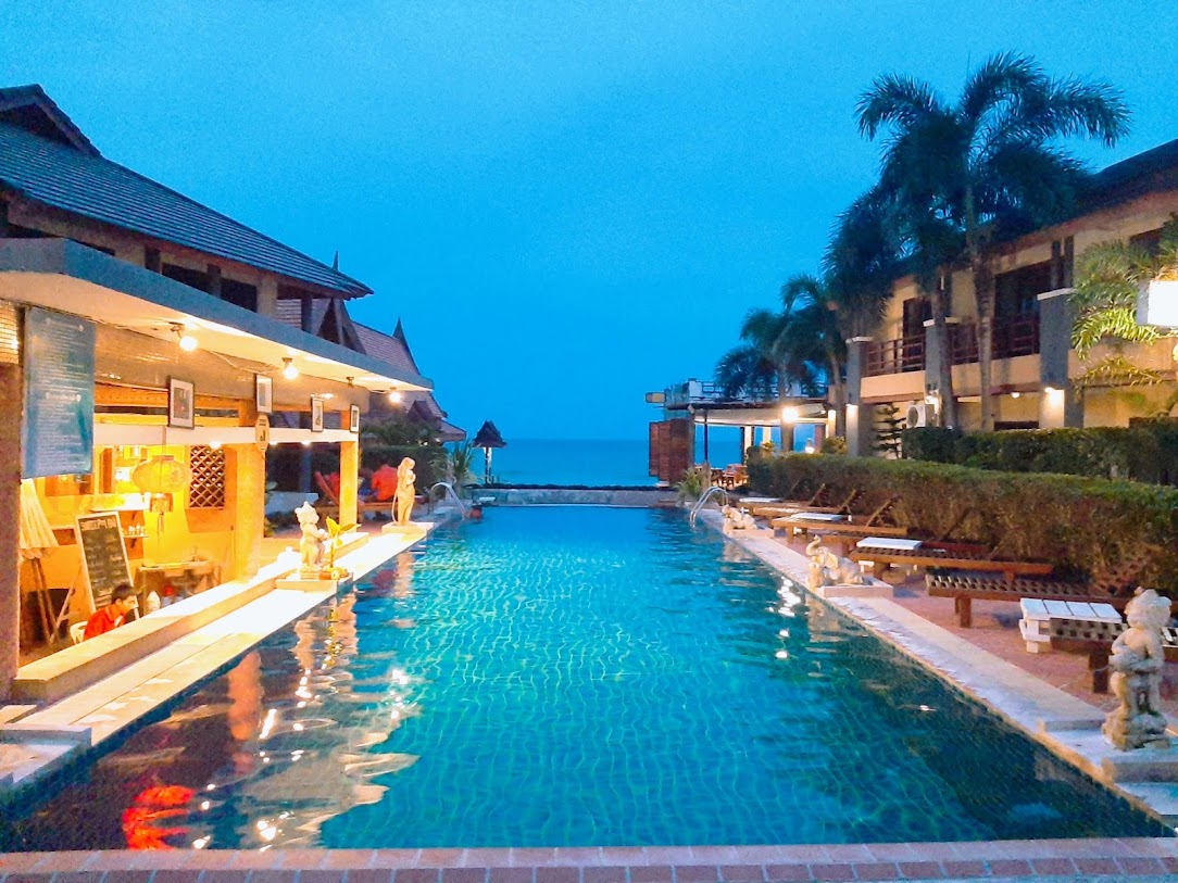 מלון הומה על חוף הים עם מגורים רגועים, מסעדה נינוחה ובר, בתוספת בריכה.