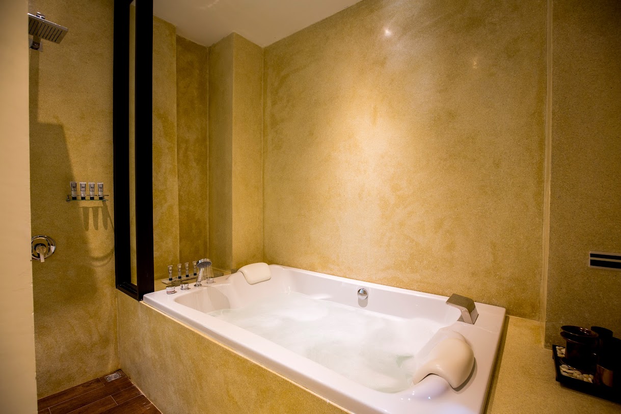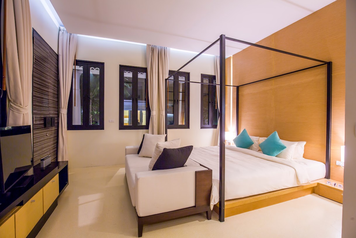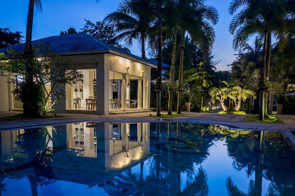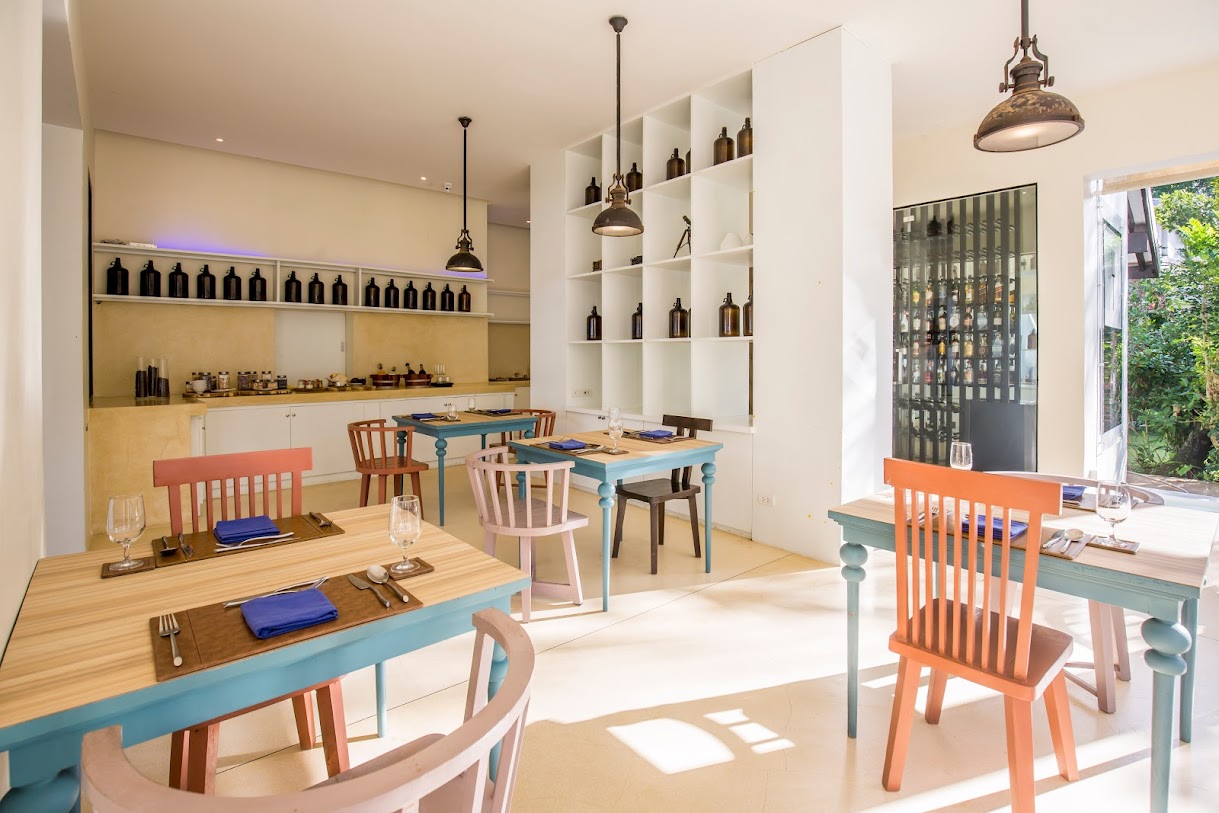 חדרים וסוויטות מודרניים עם גינות או טרסות פרטיות, בתוספת סעודות מזדמנות ובריכה חיצונית.