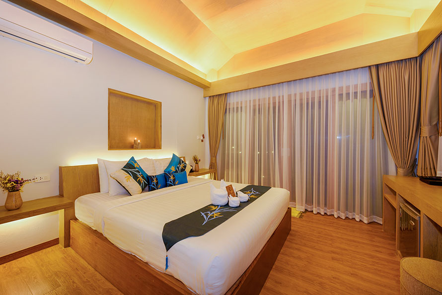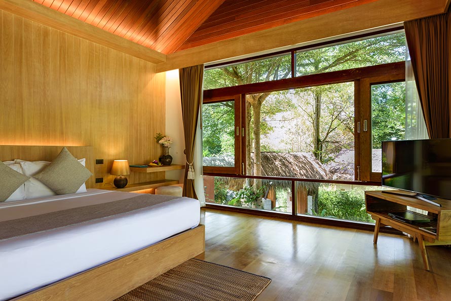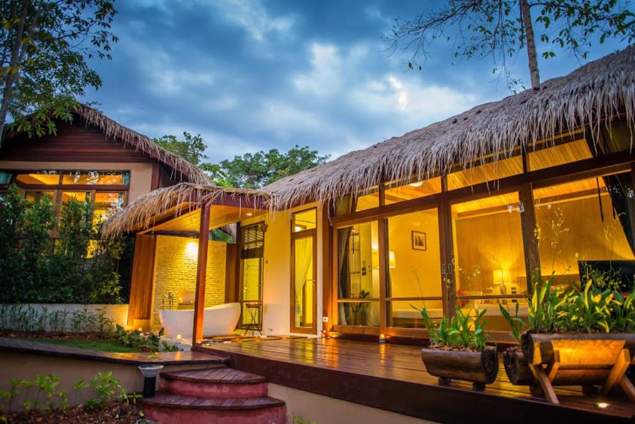 מלון מסוגנן על חוף הים המציע וילות ובונגלוס מאופקים, בתוספת אוכל, בר ועיסויים.