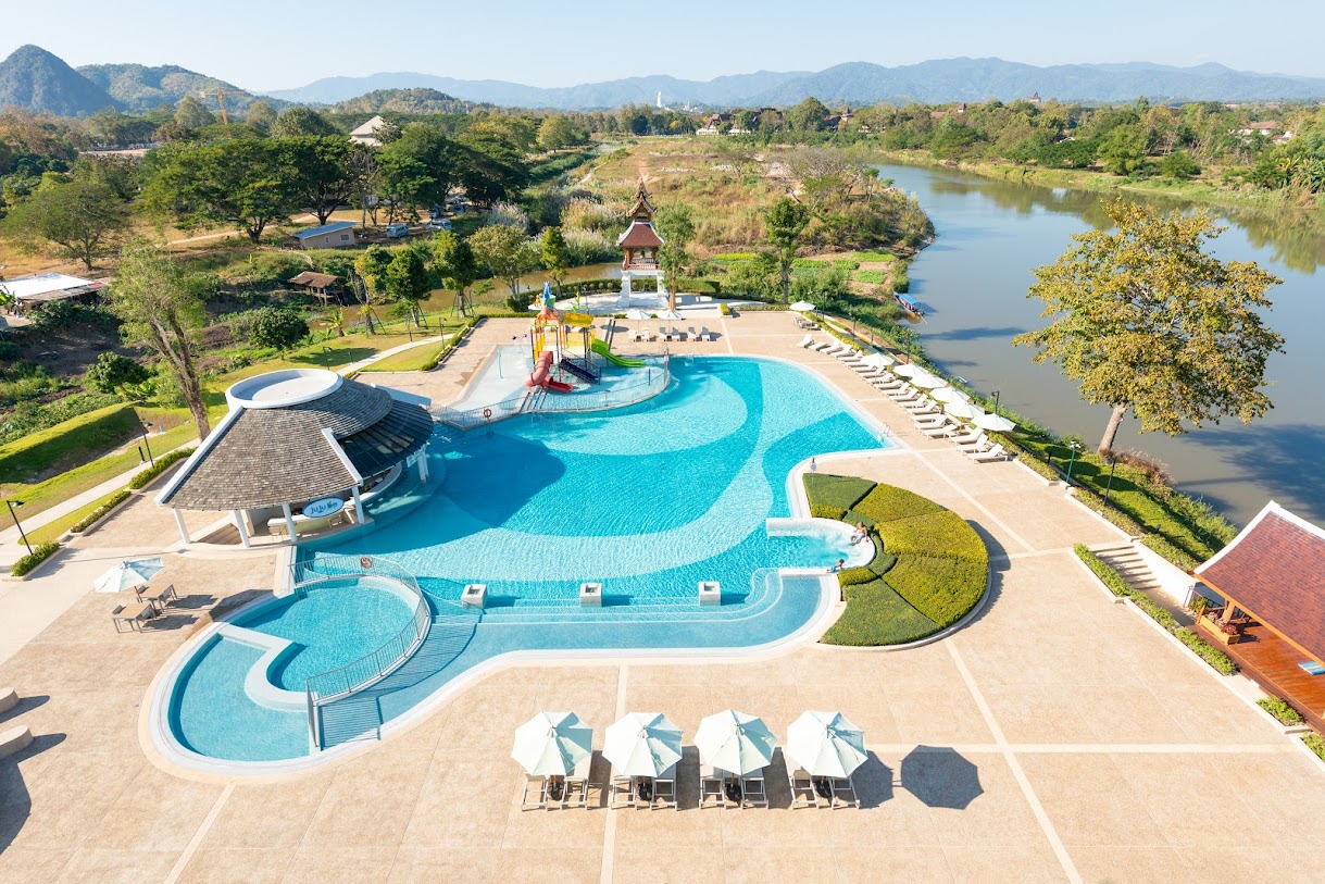 מלון יוקרתי לצד הנהר מציע 3 מסעדות, ספא, בריכה חיצונית ובר שניתן לשחות אליו.