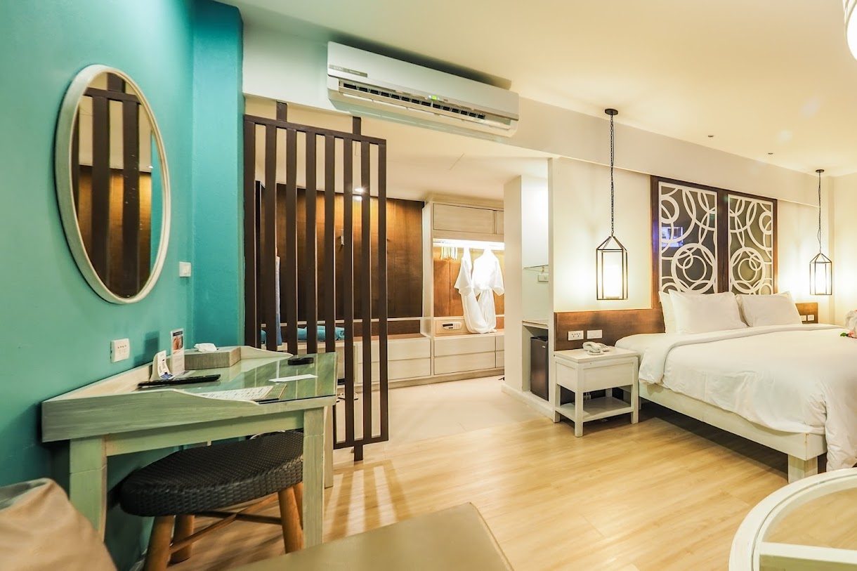 רובעים אופנתיים באתר נופש יוקרתי הכולל בריכות חיצוניות, בתוספת מסעדה איטלקית וספא.