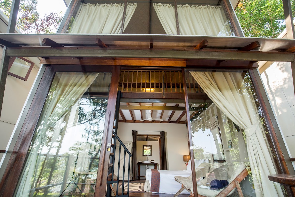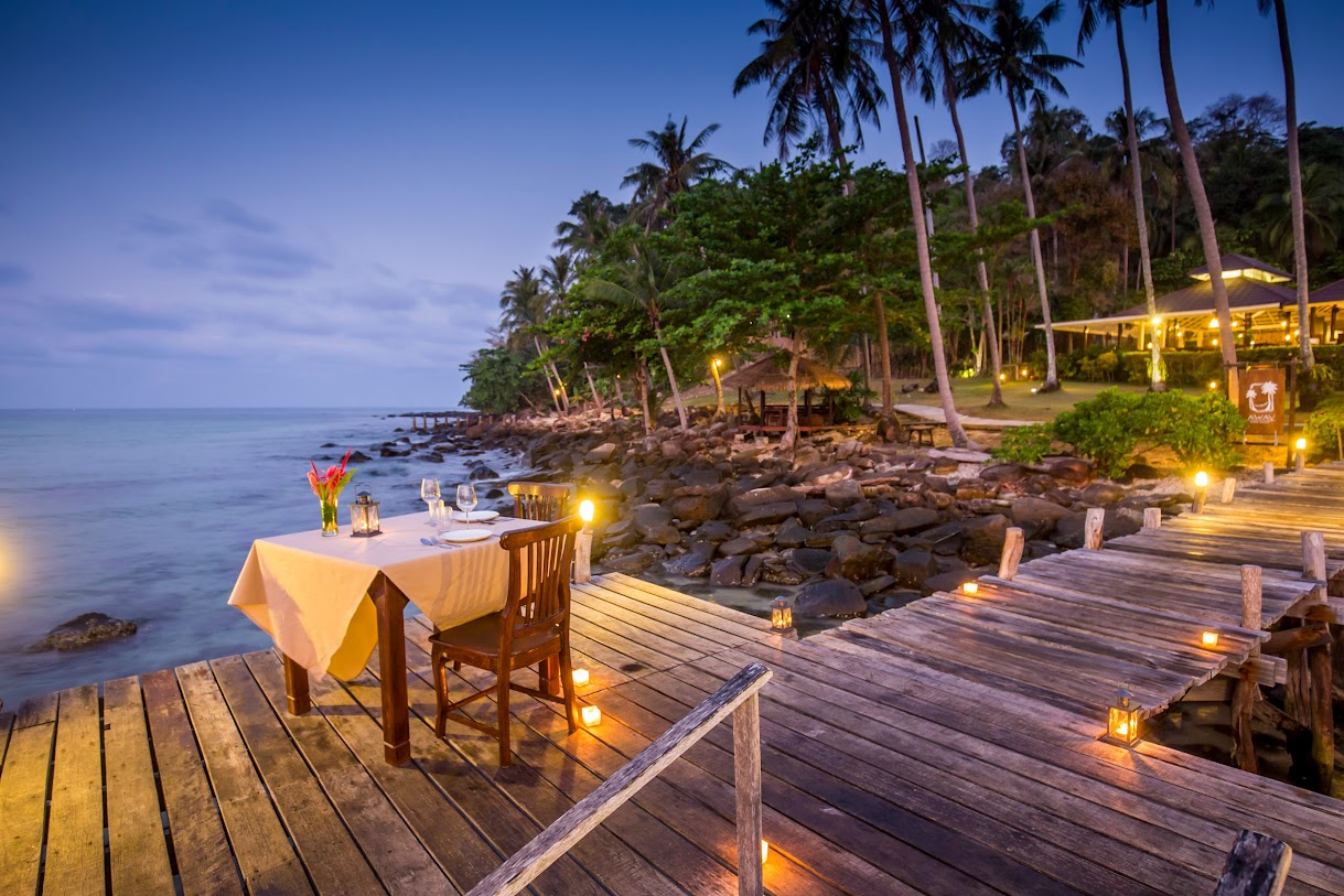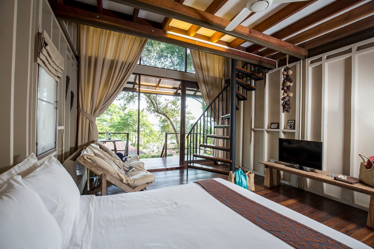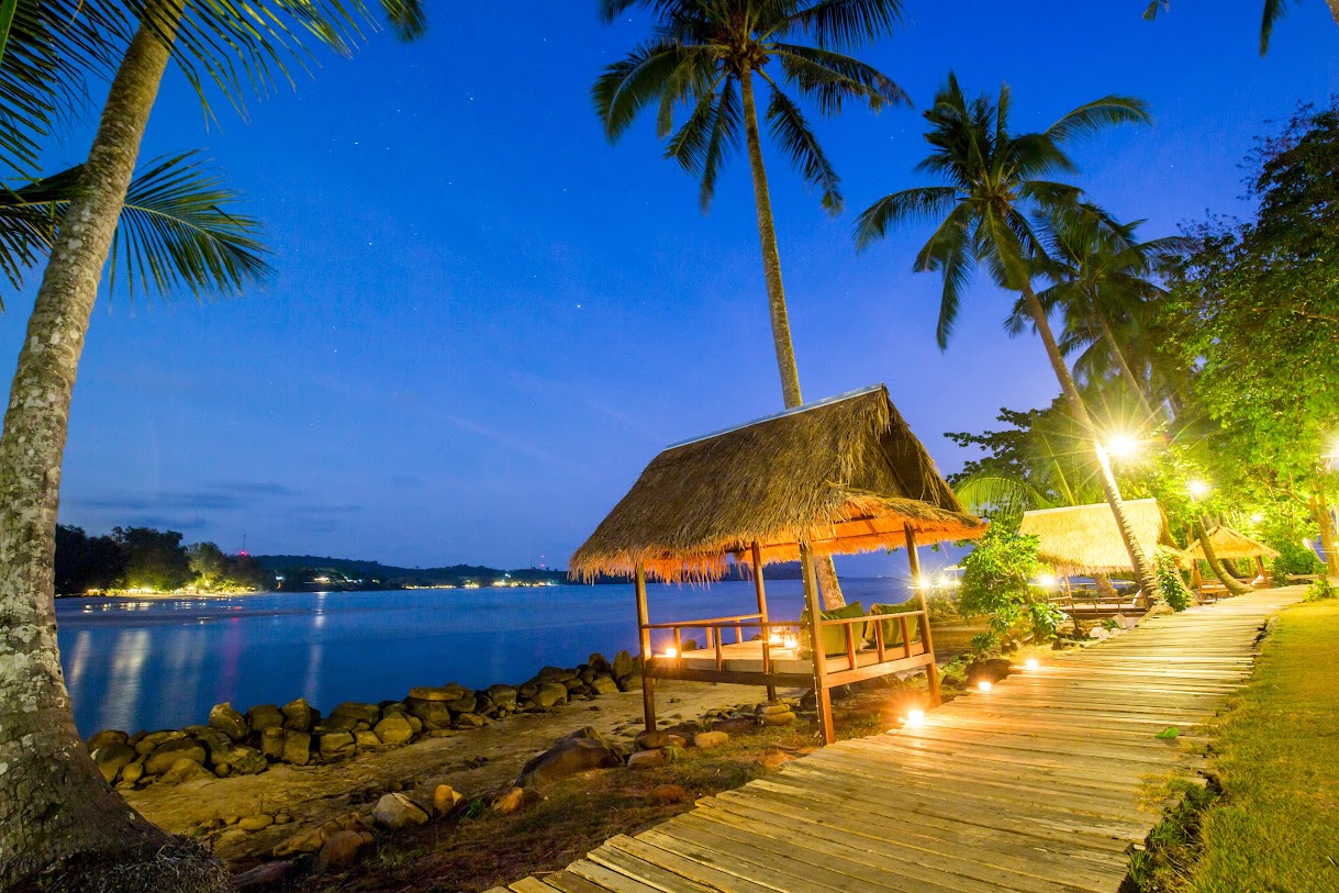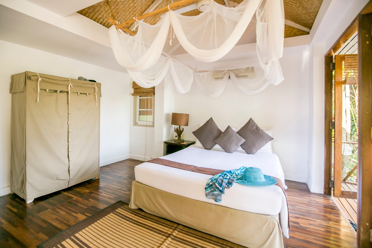 בונגלוס מאווררים עם נוף למפרץ באתר נופש נינוח המציע סעודות באוויר הפתוח, בריכה וספא.