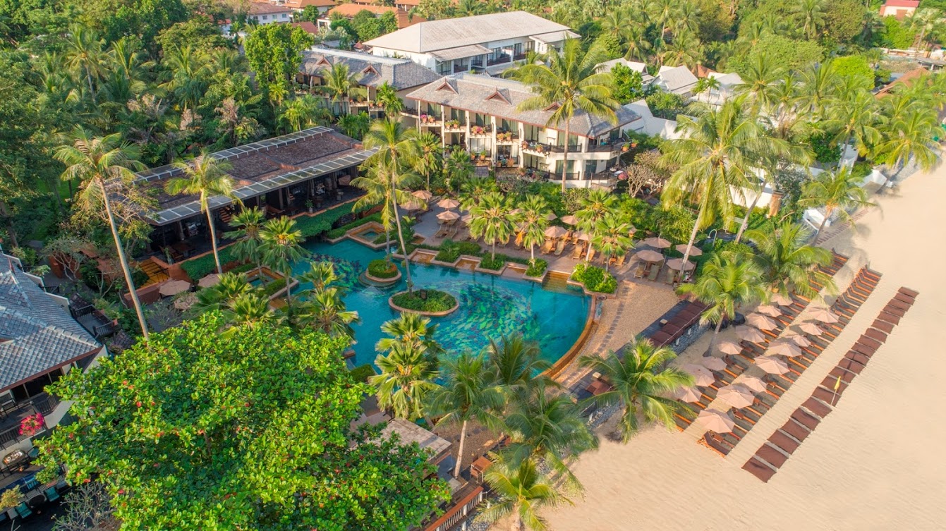 Luxury beachfront resort with upscale dining, an infinity pool, a spa & a fitness center.