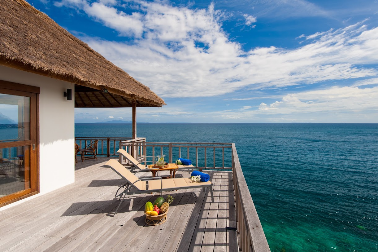 Chic villas with private plunge pools in a secluded resort offering a free beach shuttle.